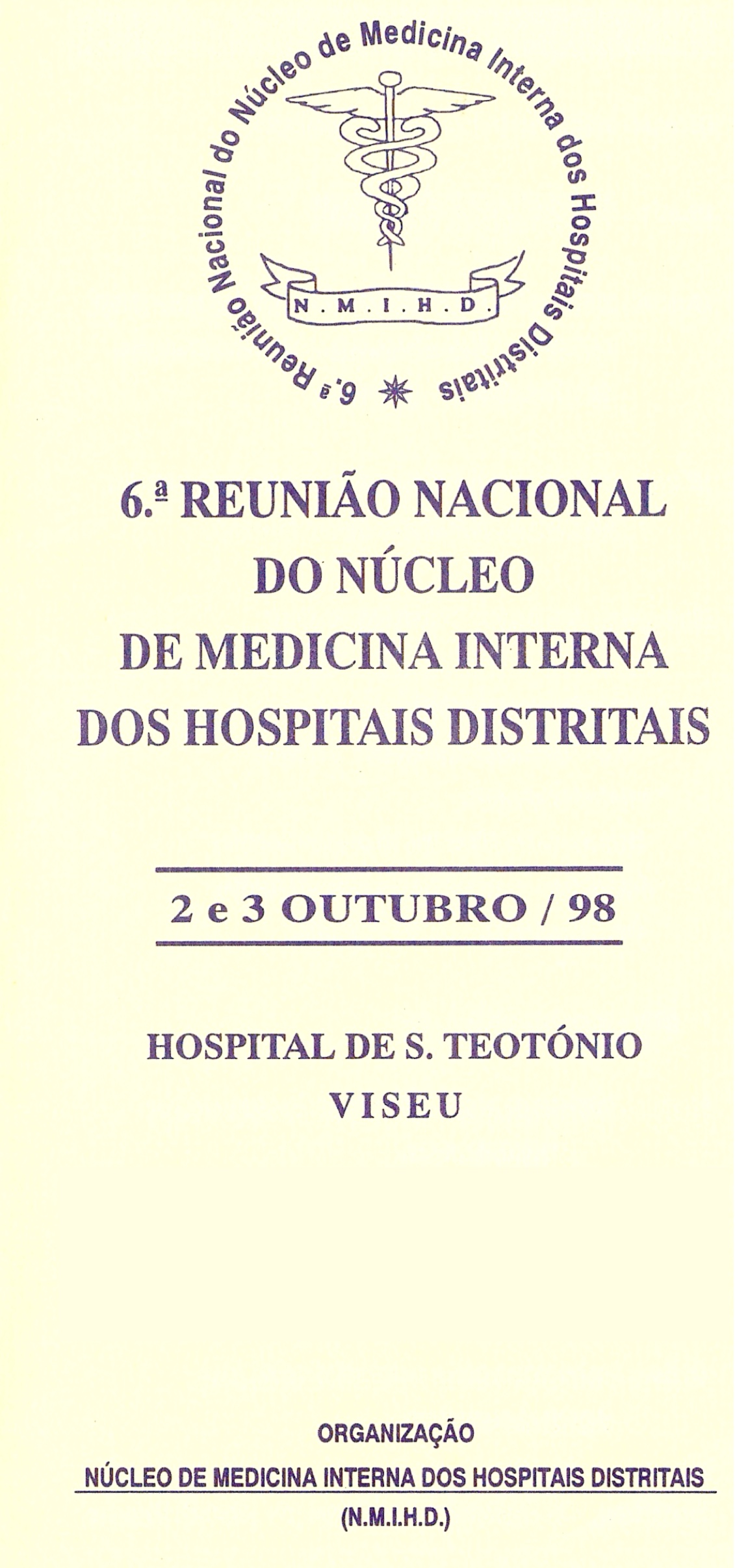 VI Reunião Nacional do NMIHD – 1998 In Reuniões Nacionais Prévias Criado Novembro 5, 1998 1998, Reunião Nacional, Viseu